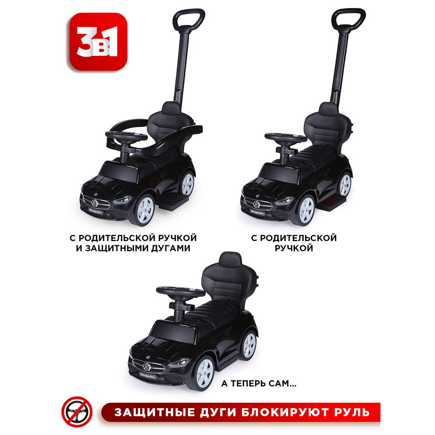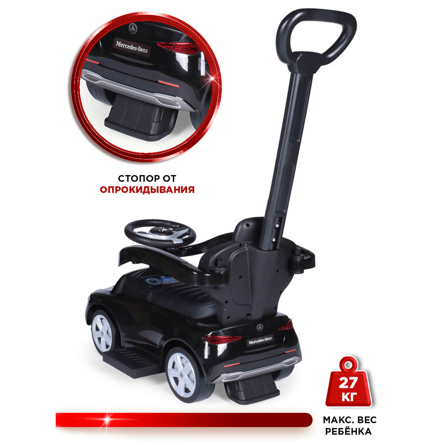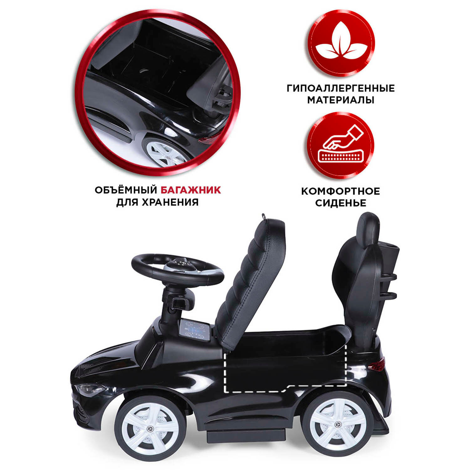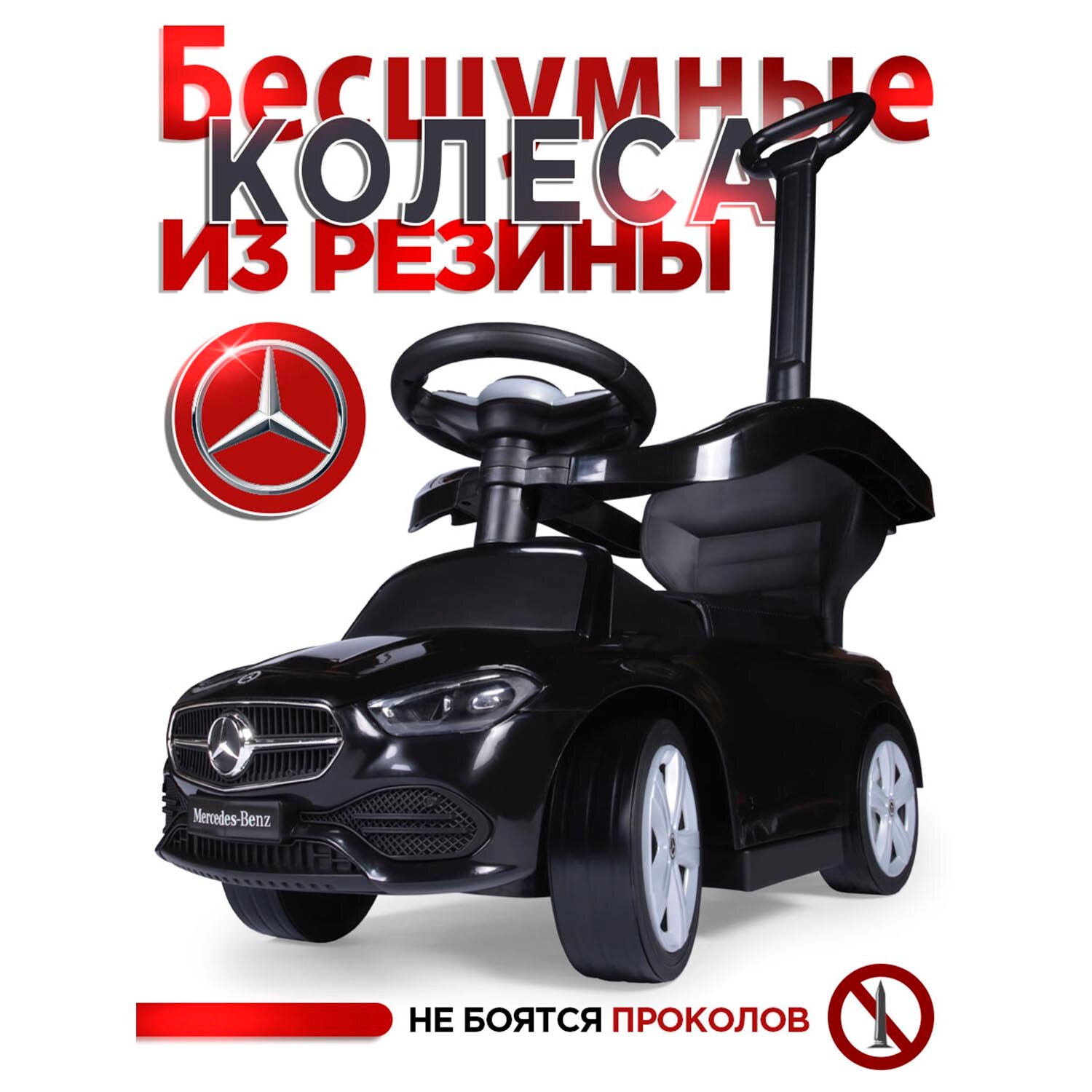 Каталка детская Mercedes-Benz AMG C63 Coupe BabyCare, (кожаное сиденье, резиновые колеса), черный интересное: