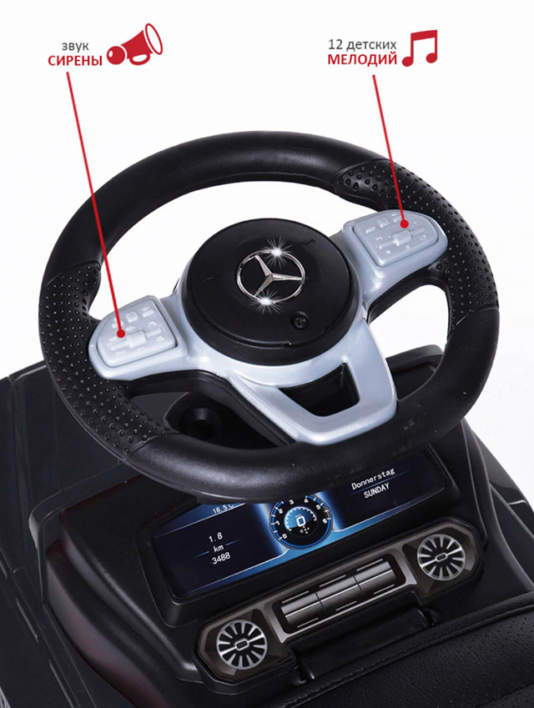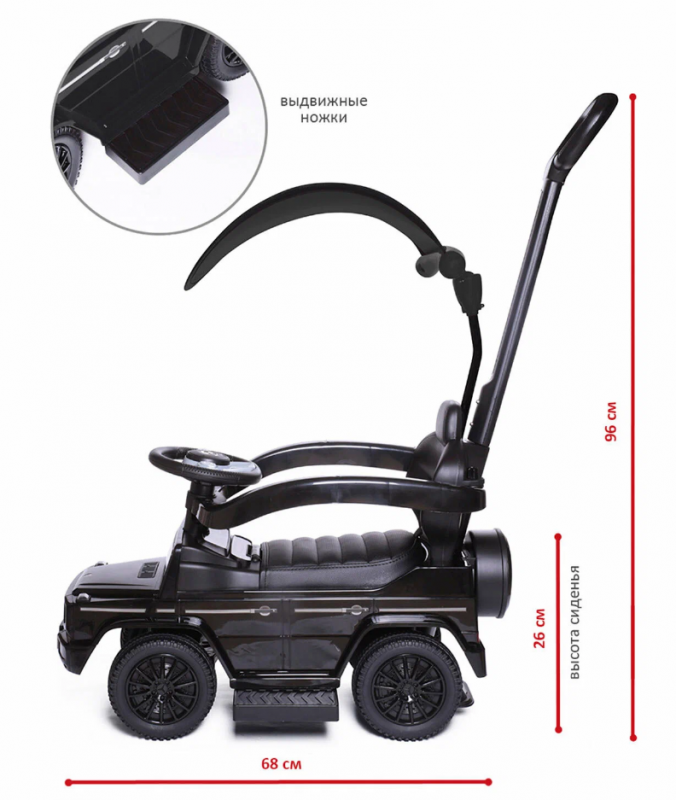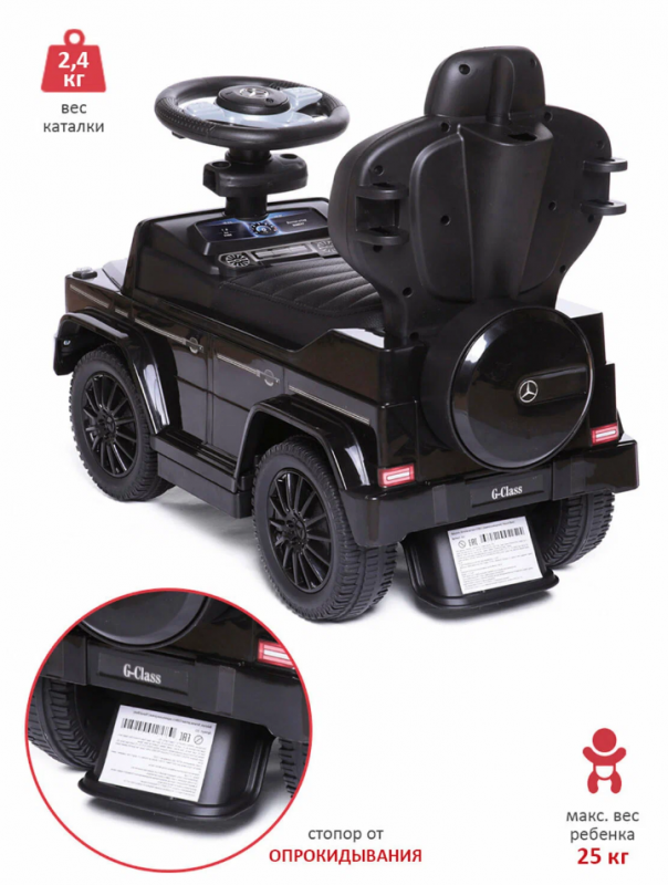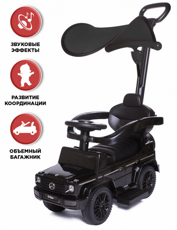 Детская каталка с ручкой 3 в 1 Mercedes-Benz G350d, черный интересное:
