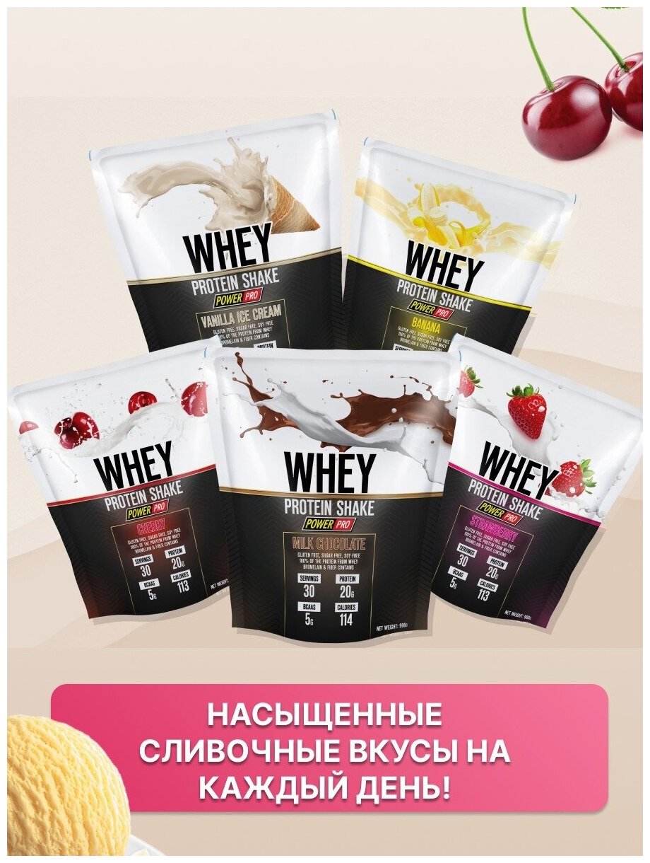 Протеин сывороточный, протеиновый коктейль Power pro WHEY SHAKE 900 гр, вишня