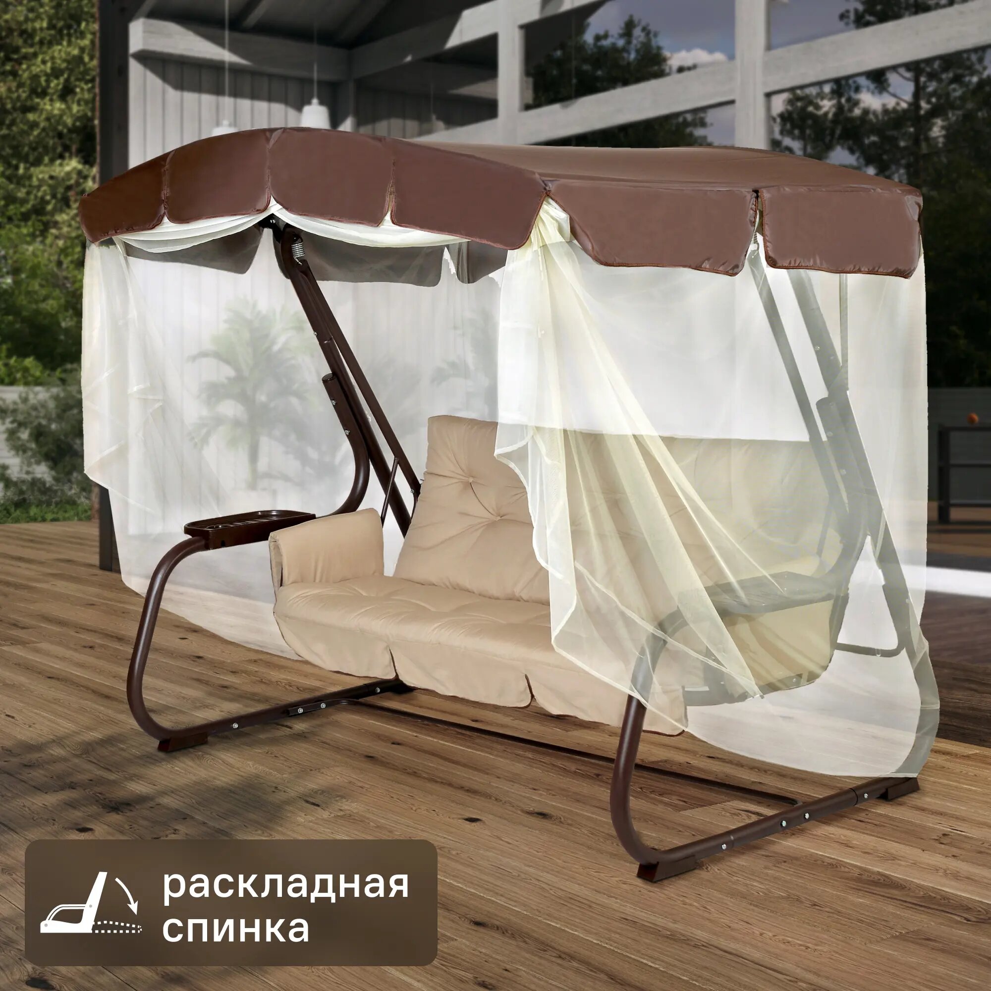 Качели садовые Naterial Ривьера 3-х местные (до 280 кг) коричневый/бежевый интересное: