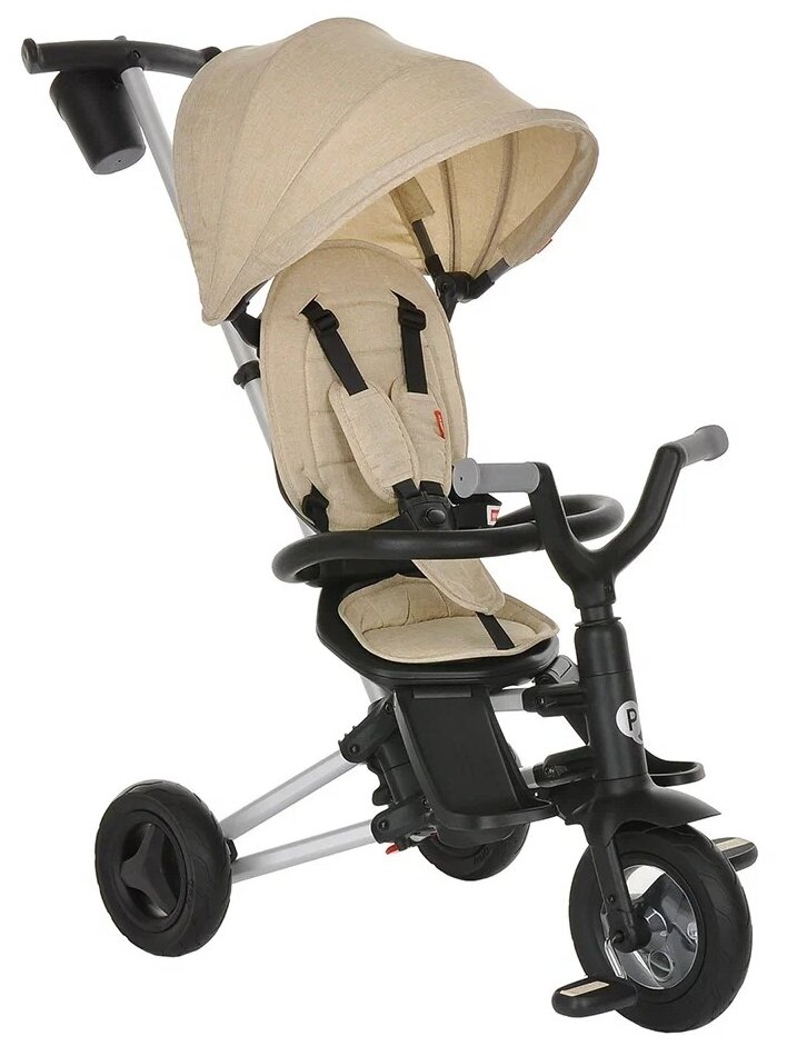 Трехколесный складной велосипед-коляска с поворотной сидушкой QPlay Nova без рюкзака бежевый