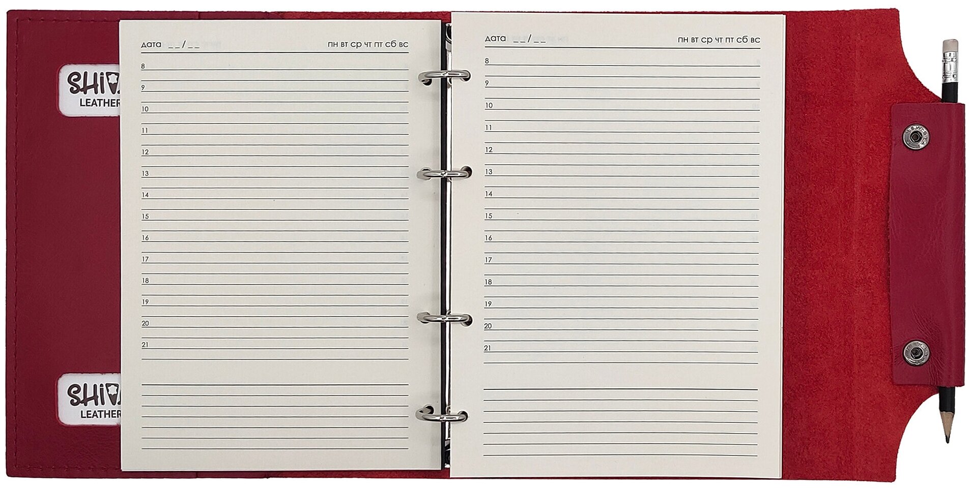 СохранитьКрасный ежедневник недатированный кожаный на кольцах А5, блокнот-планер с отсеком под карандаш, MBN-RP-PENSIL-RD интересное: