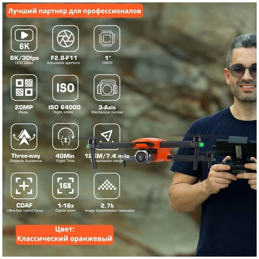 Другие дроны и квадрокоптеры Autel Robotics Квадрокоптер Autel Robotics EVO LITE+ Orange Premium (3 батареи) RTF - EVO-LITE-PLUS-ORANGE-COMBO3