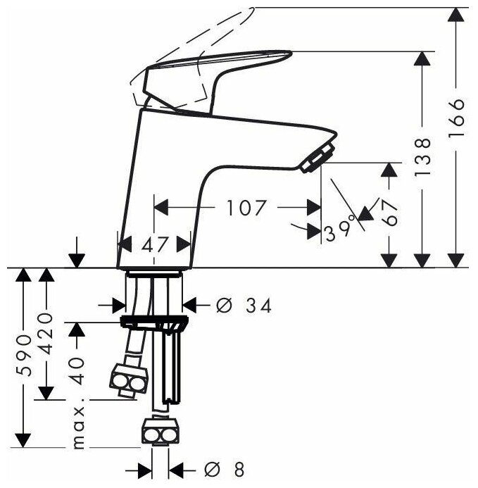 | Длина излива | 107 мм |
