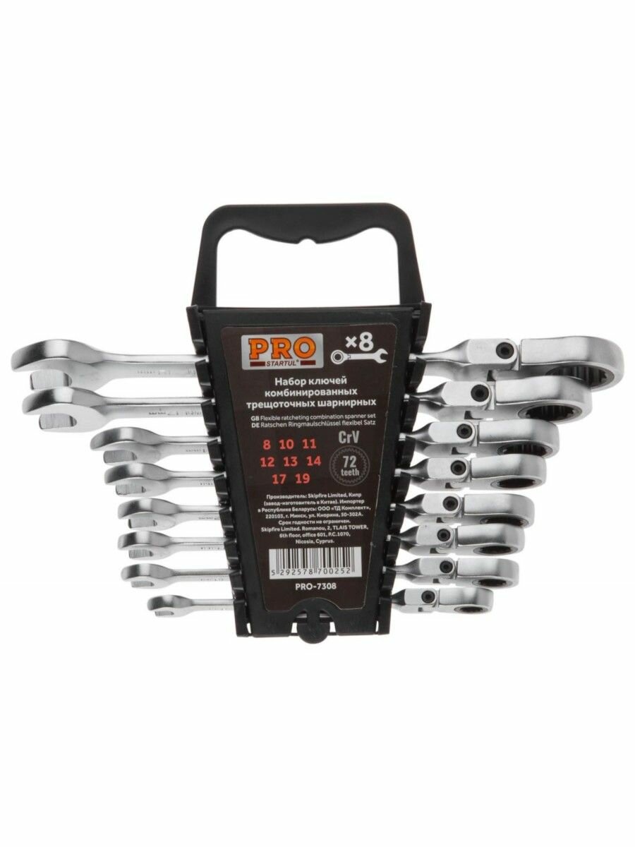 Набор ключей комбинированных с поворотной трещоткой 8-19 мм 8 предметов PRO STARTUL (PRO-7308)