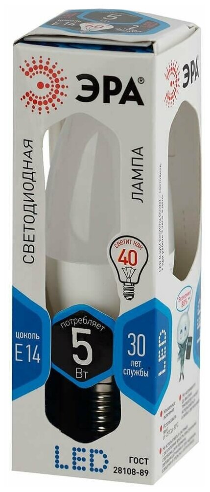 Лампочка светодиодная ЭРА STD LED B35-5W-840-E14 E14 5 Вт свеча нейтральный белый свет арт. Б0018872 (1 шт.)