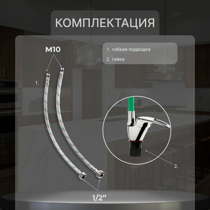 Купить Смеситель для кухни ZEIN Z2109, однорычажный, гибкий излив, картридж 40 мм, зеленый/хром 5478289