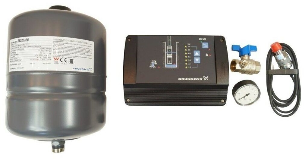 | Дополнительная информация | в комплект входит: насос, блок управления CU301, наборный мембранный бак 8 л/7 бар, датчик давления на 0-6 бар, манометр 0-10 бар |