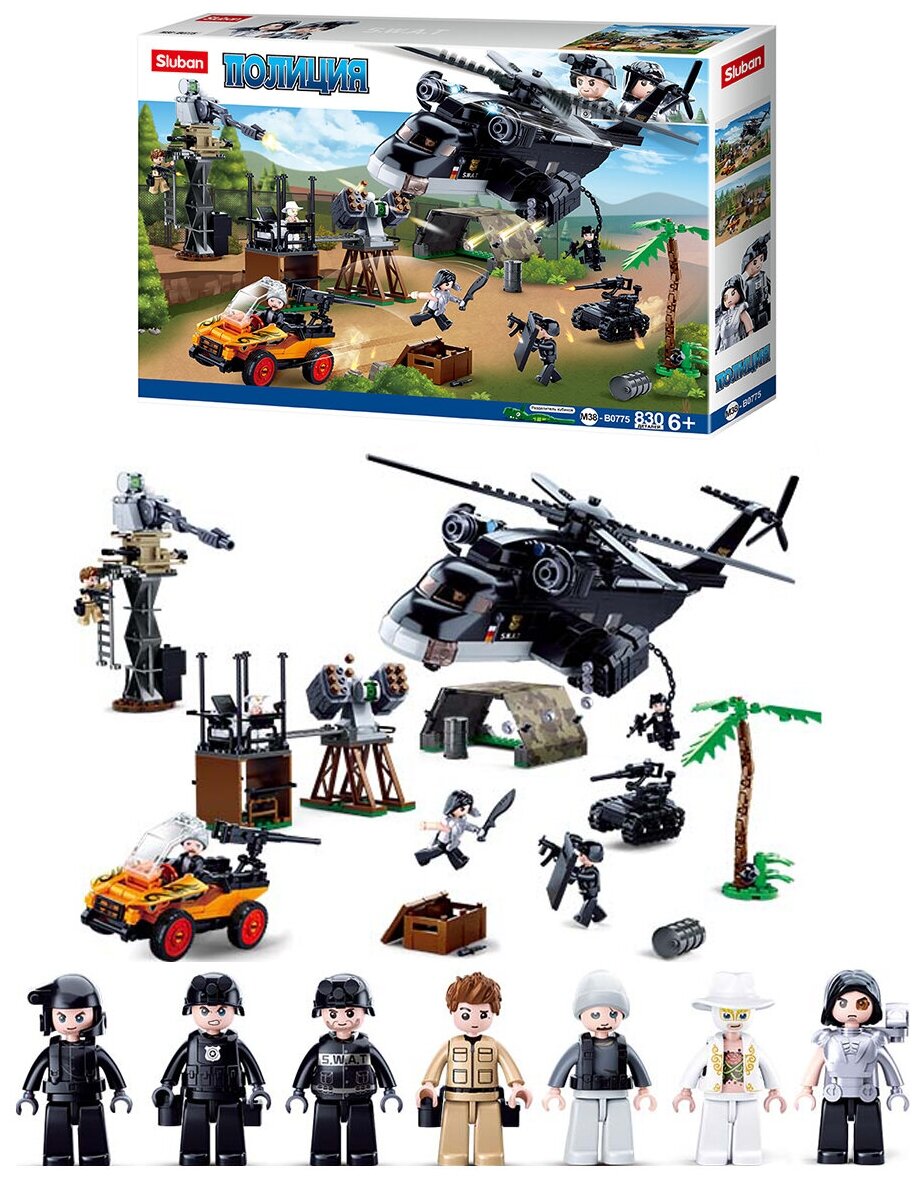 Конструктор SLUBAN Полиция M38-B0775 Спецназ: Атака с воздуха (830 дет, 7фиг.)