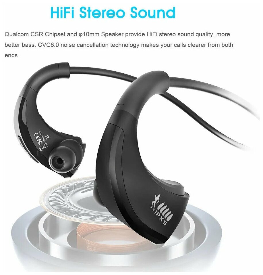 Беспроводные наушники FiiDiil Bluetooth наушники IPX5. Водонепроницаемые Беспроводные наушники, стерео гарнитура аудио. Хэндс фри для тренажерного зала с микрофоном интересное: