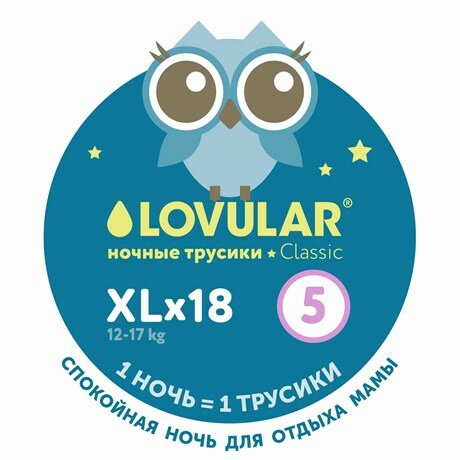 Подгузники-трусики ночные Lovular Classic XL (12-17 кг) 18 шт