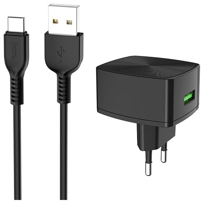 Быстрая зарядка Type-C Hoco C70A с одним USB портом/ набор с кабелем интересное: