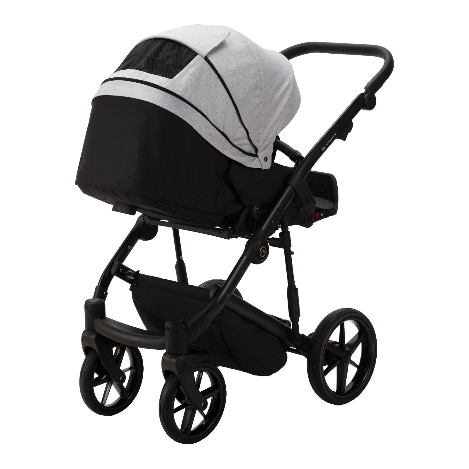 Коляска универсальная Adamex Mobi Deluxe 2 в 1, M-SD9 - Черная матовая и серебристая эко-кожа