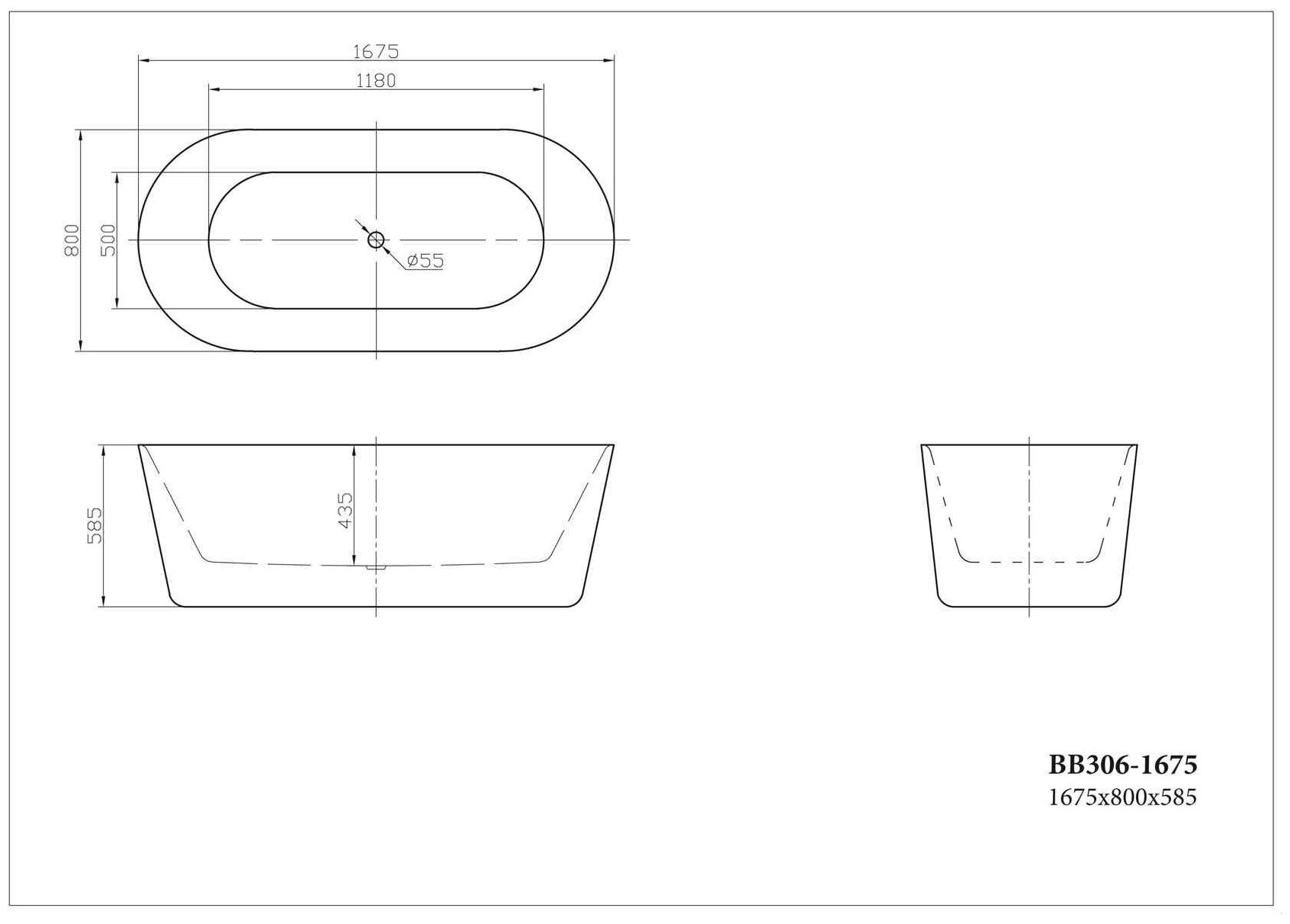 BelBagno Ванна акриловая отдельностоящая BB306-1675