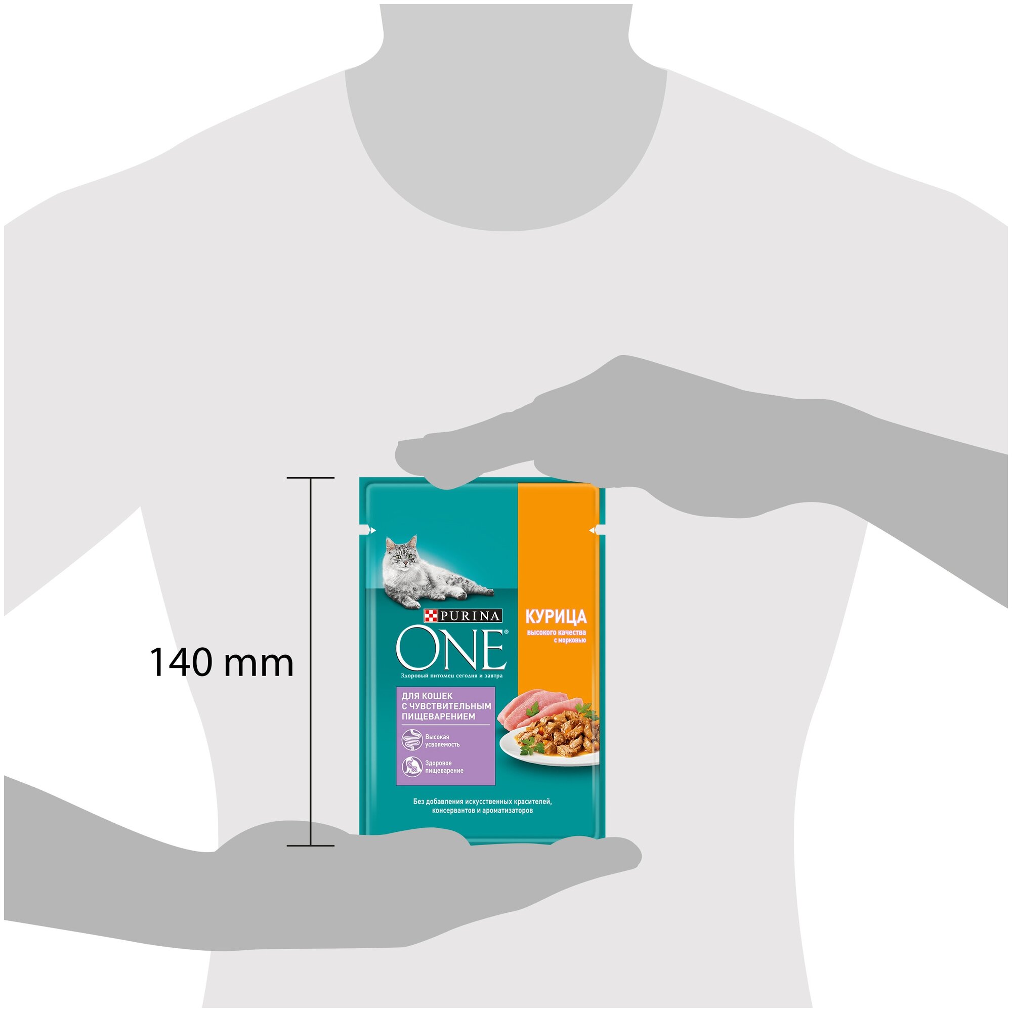 Корм для кошек PURINA ONE с чувствительным пищеварением, курица с морковью пауч 75г (упаковка - 26 шт)