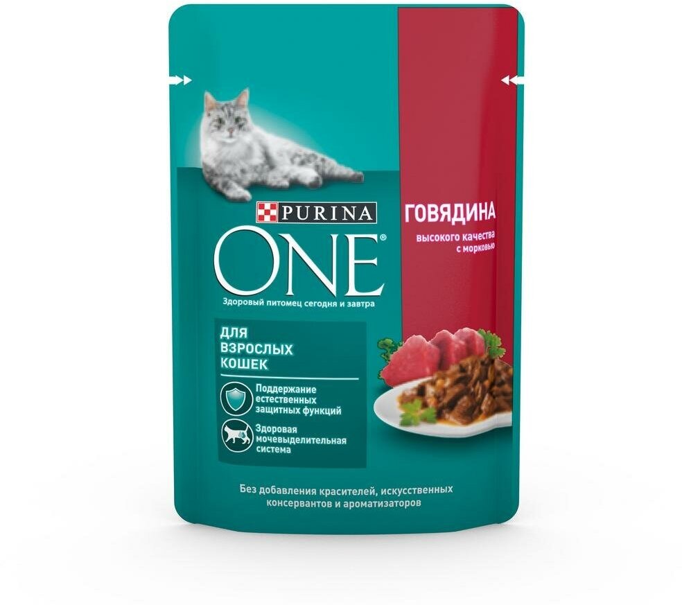 Влажный корм Purina ONE для взрослых кошек, с говядиной и морковью, 75 гр., 1 шт.