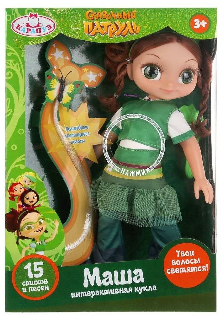 Интерактивная кукла Карапуз Сказочный патруль Маша со светящимися волосами, 32 см, SP18-LEDH-M-RU зеленый
