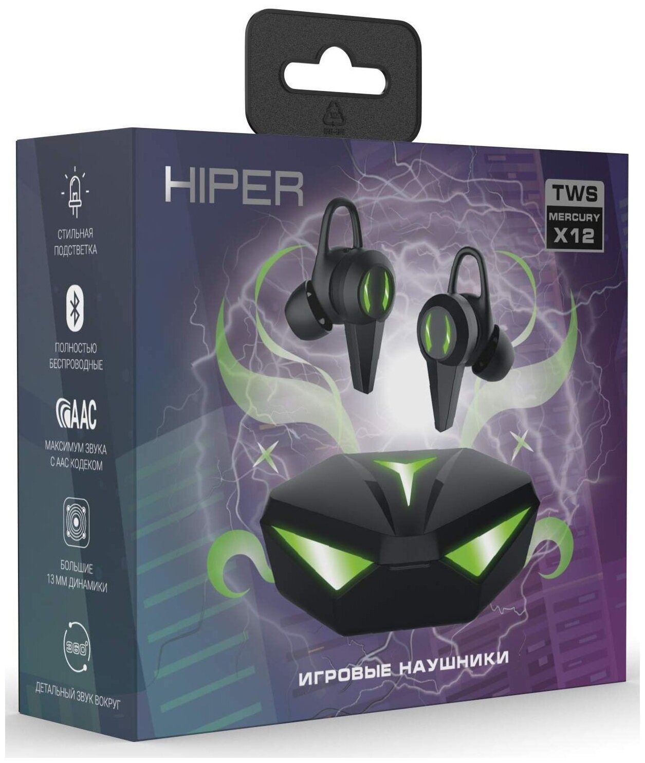 Купить Гарнитура вкладыши Hiper TWS Mercury X12 черный беспроводные bluetooth в ушной раковине HTW-MX12