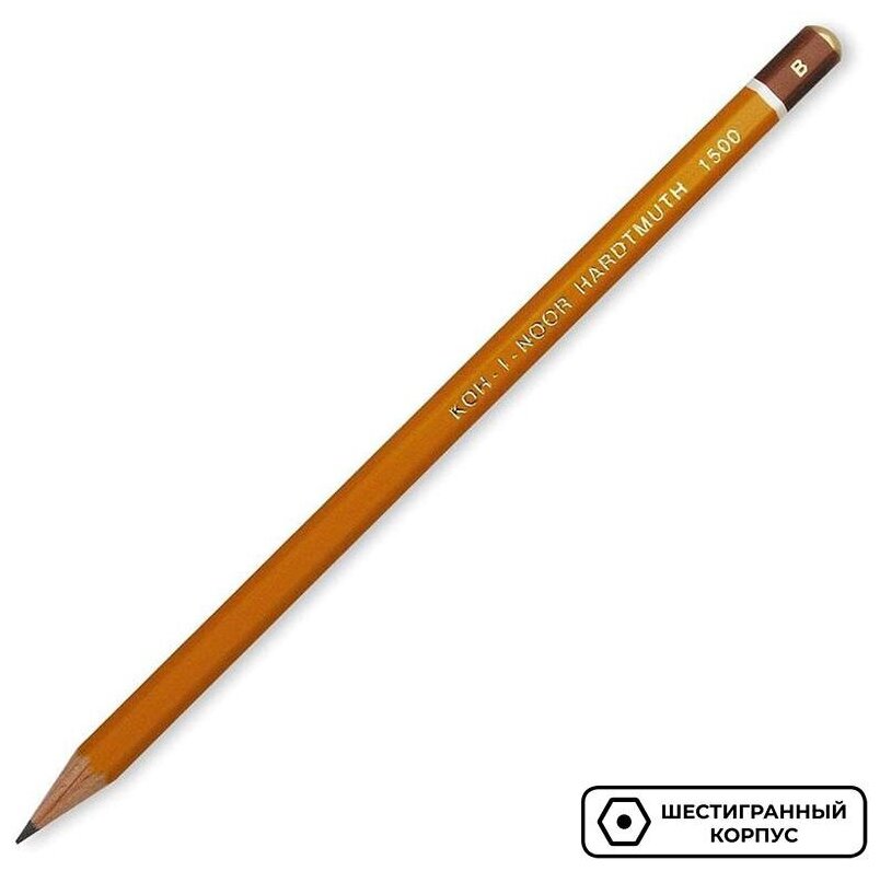 Карандаш чернографитный KOH-I-NOOR В 1500, упаковка - 12 шт., B, корпус желтый, заточенный, Чехия
