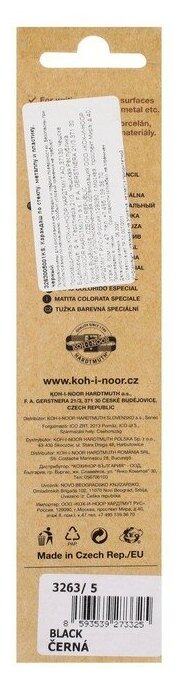 Карандаш незаточенный 4.3 мм, Koh-I-Noor 3263/5, по стеклу, металлу, пластику, чёрный, L=175 мм, микс упаковки