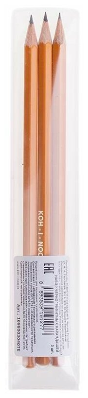 Набор чернографитных карандашей KOH-I-NOOR "1696", 3 шт, Н, HB, В, заточенные (1696003040TE)