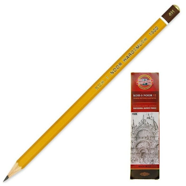 Карандаш чернографитный KOH-I-NOOR 1500, 1 шт., 4H, корпус желтый, заточенный, 150004H01170 В комплекте: 12шт.