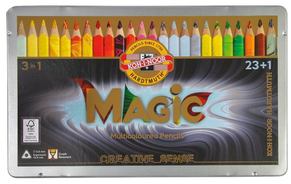 Купить Цветные карандаши KOH-I-NOOR Набор карандашей с многоцвет. грифелем "Magic" KOH-I-NOOR, 24цв. (метал. коробка)