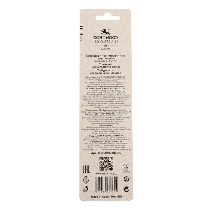 Koh-I-Noor Набор карандашей ч/г 3шт Koh-i-Noor TRIOGRAPH 1802 B, красный корпус, блистер интересное: