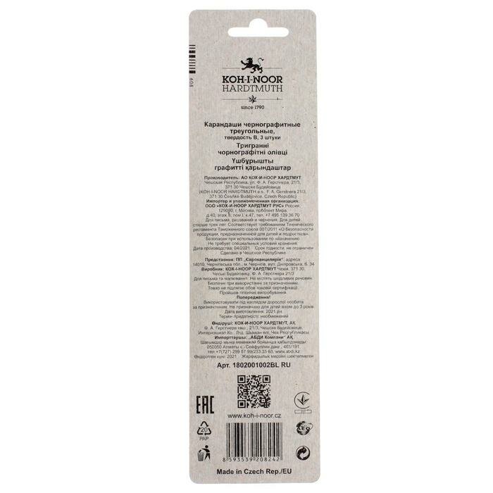 KOH-I-NOOR Набор карандашей чернографитных 3 штуки Koh-I-Noor 1580 B, комплект 2 шт., блистер