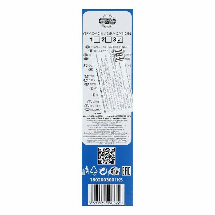 KOH-I-NOOR Набор карандашей чернографитных 3 штуки Koh-I-Noor 1580 B, комплект 2 шт., блистер
