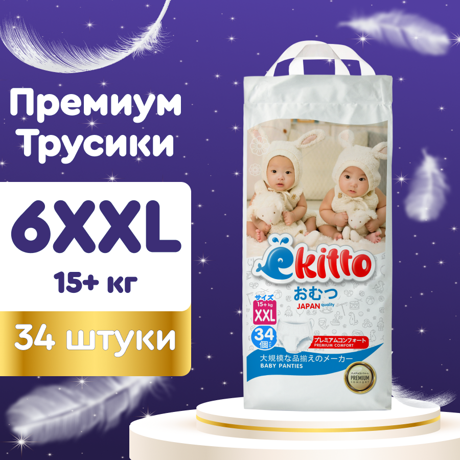 Подгузники трусики 6 размер XXL для новорожденных детей от 15+ кг 34 шт / Ёкитто
