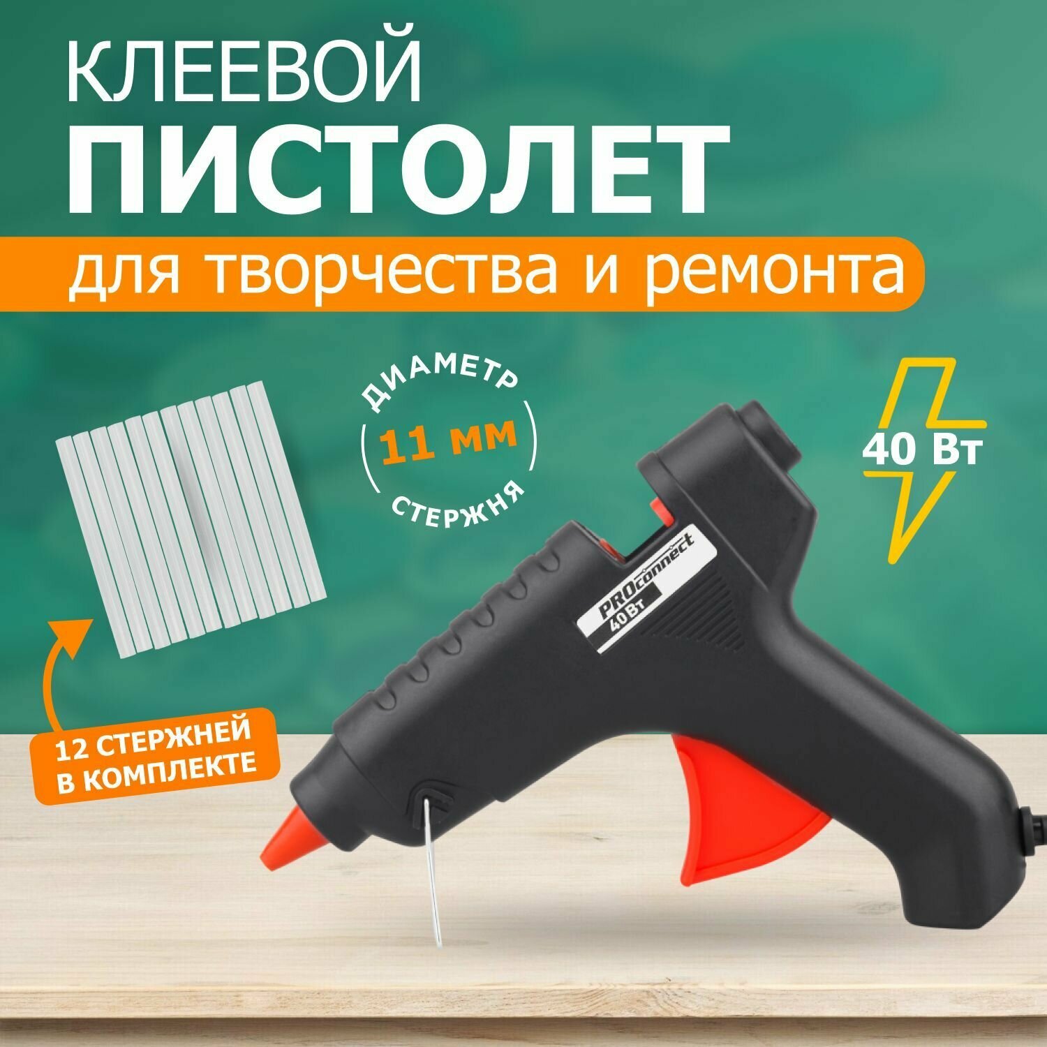 Клеевой пистолет для рукоделия 40 ВТ и стержни 11 мм, 12 штук
