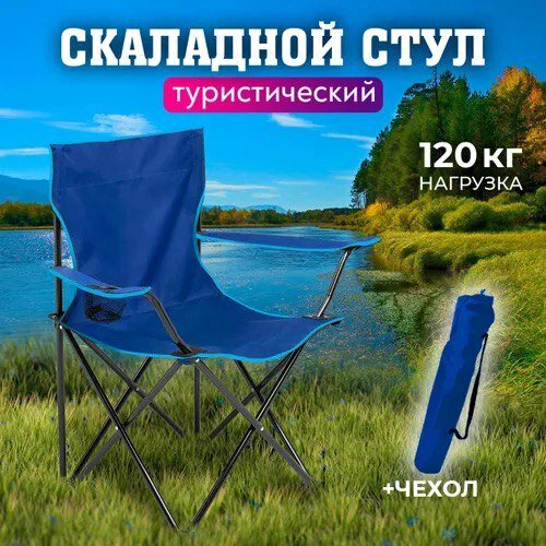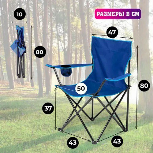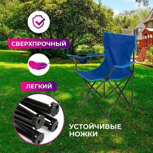 Купить Кресло складное туристическое с подстаканником, вес до 100 кг, цвет синий