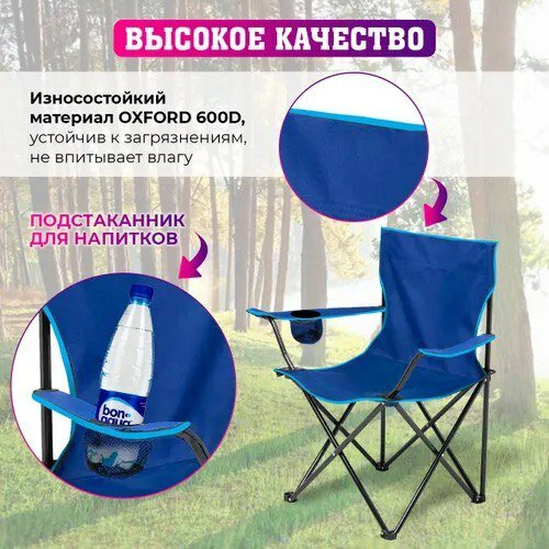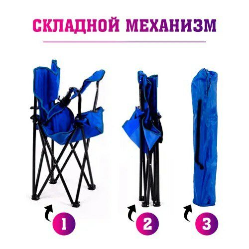 Кресло складное туристическое с подстаканником, вес до 100 кг, цвет синий интересное: