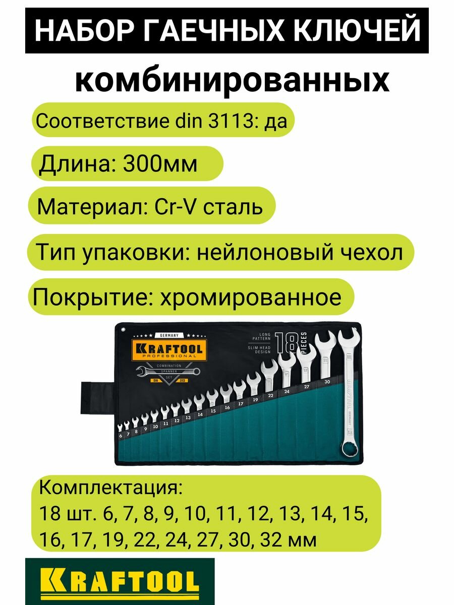 Набор комбинированных гаечных ключей KRAFTOOL 6-32 мм, 18 предметов 27079-H18_z01