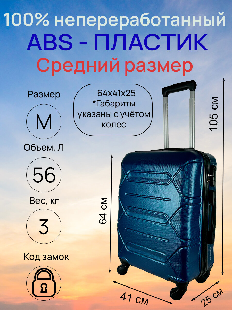 Купить Чемодан, средний размер (М) 56 л, 64x41x25, съемные колеса, кодовый замок, цвет - синий