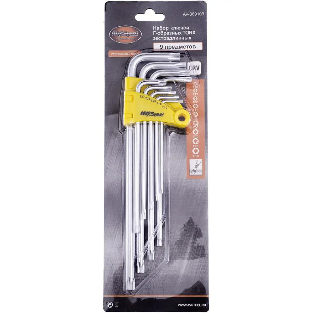 Набор экстрадлинных Г-образных ключей TORX T10-T50 9 предметов AV Steel AV-369109