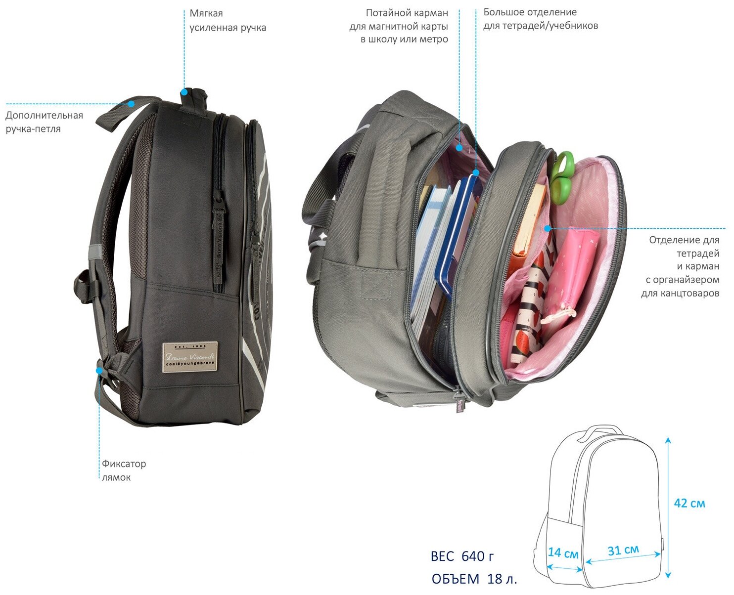 Рюкзак BrunoVisconti, классический суперлегкий, темно-серый с эргономичной спинкой, «YOUNG PRINCESS», Арт. 12-008-036/06 интересное: