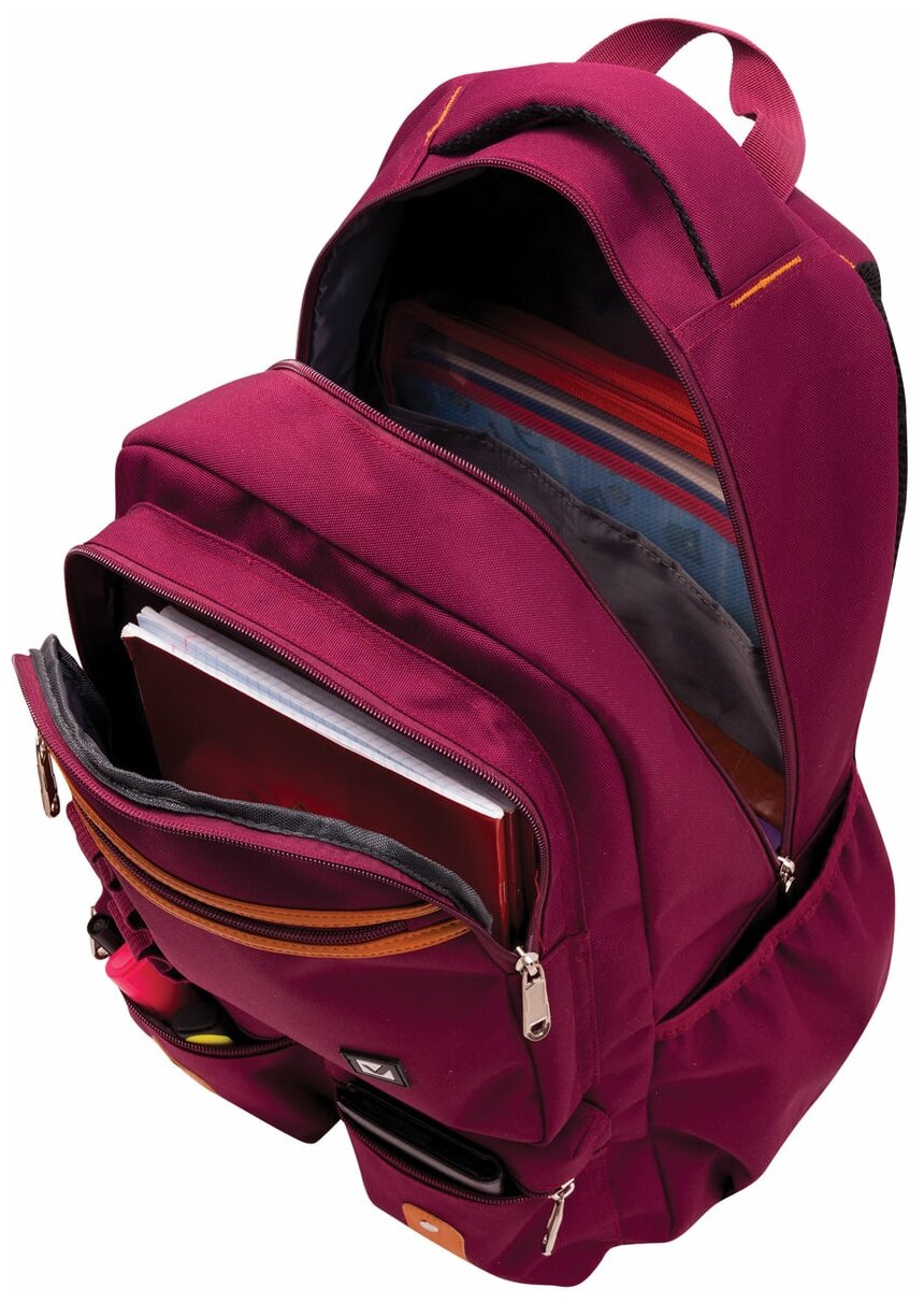 Рюкзак BRAUBERG STATES универсальный, карман-антивор, "Jersey", бордовый, 46х31х14 см