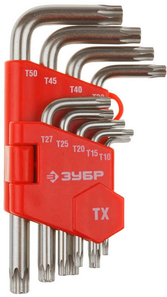 Набор имбусовых коротких ключей TORX Т10-Т50, 9 шт ЗУБР мастер 27462-1_z02