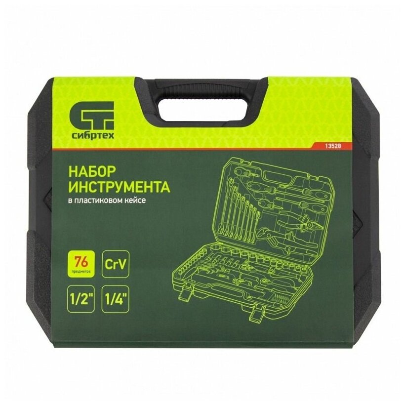 Купить Набор инструментов 76 предметов CrV, 1/2", 1/4" Сибртех 13528