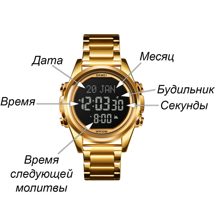 Часы для мусульман SKMEI 1667 - Золотистые/Черные