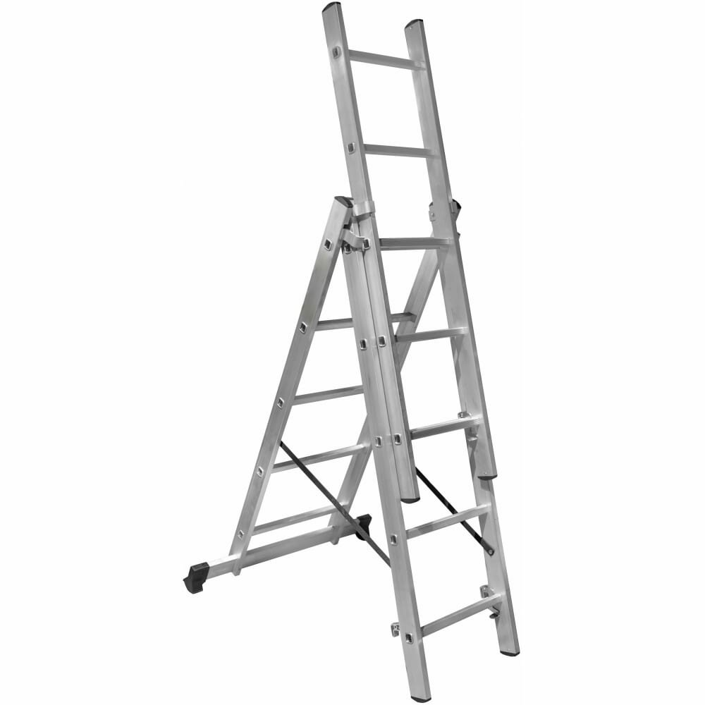 Новая высота Лестница-трансформер 3-х секционная 3×7 ступеней, 3×1,9 м, высота 4,5 м, нагрузка 150 кг, алюминий, новая высота