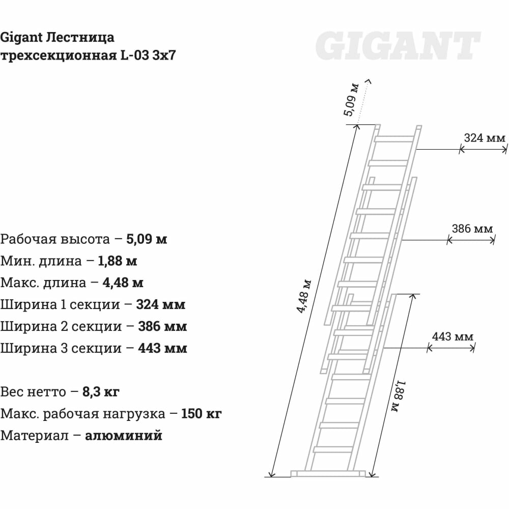 Трехсекционная лестница Gigant L-03 3х7 (Россия) интересное: