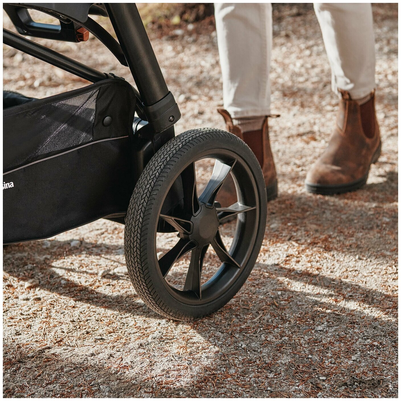 По снегу очень плохо идёт, колеса маленькие приходится толкать Коляска больше городского типа |