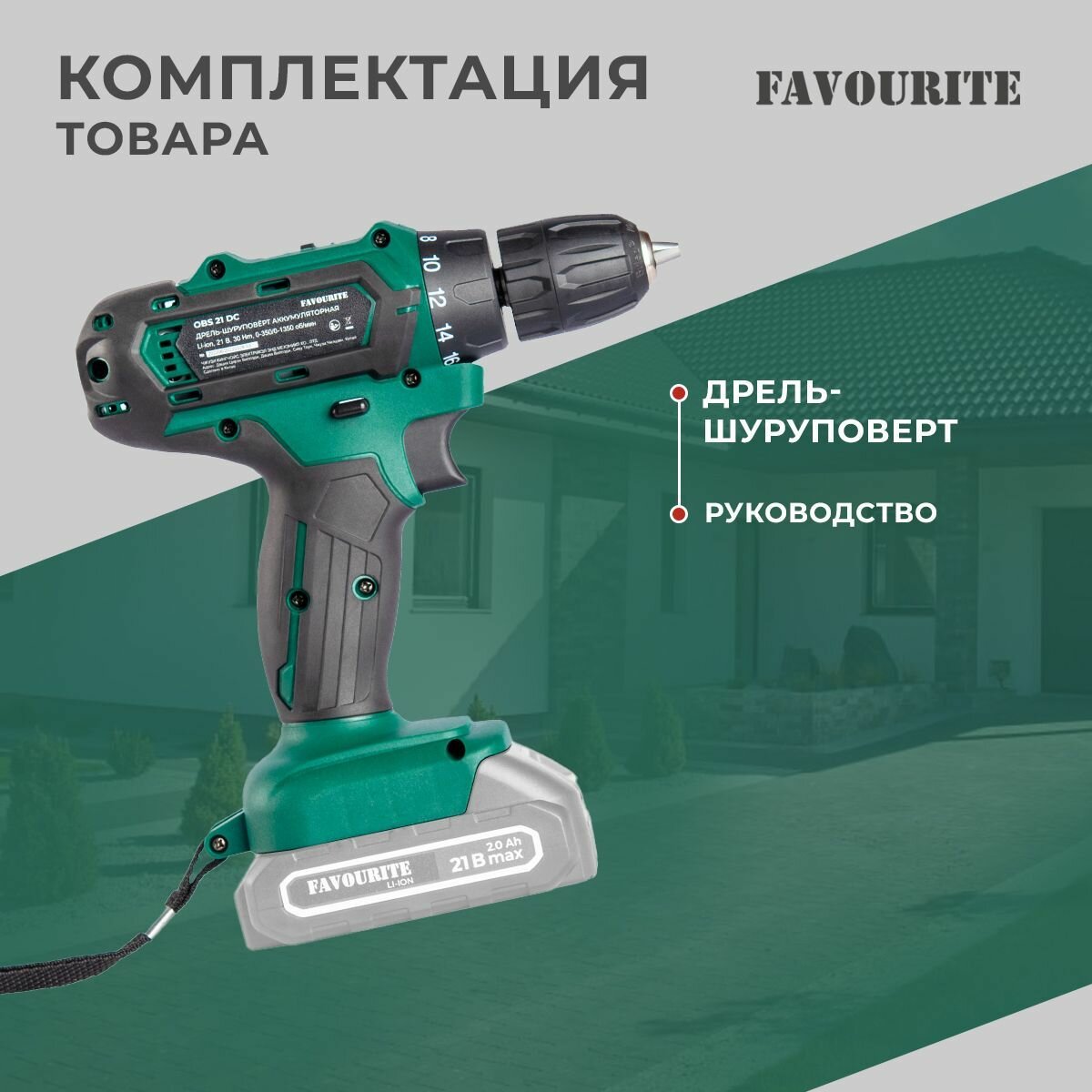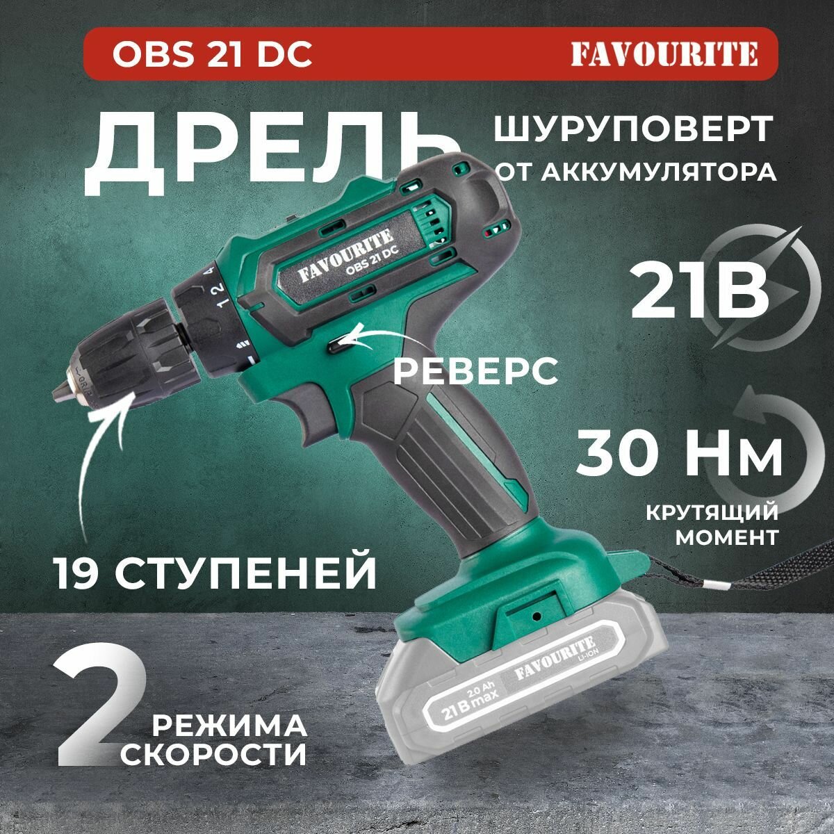 Дрель-шуруповёрт аккумуляторная FAVOURITE OBS 21 DC SET (АКБ*2 шт, ЗУ)