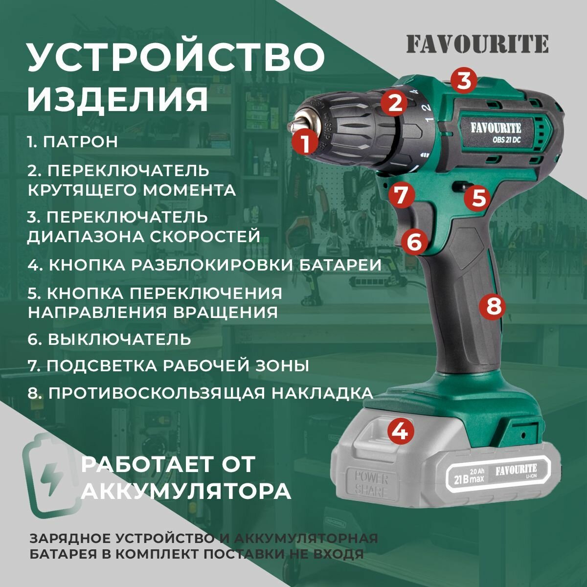 Дрель-шуруповёрт аккумуляторная FAVOURITE OBS 21 DC (без АКБ и ЗУ)