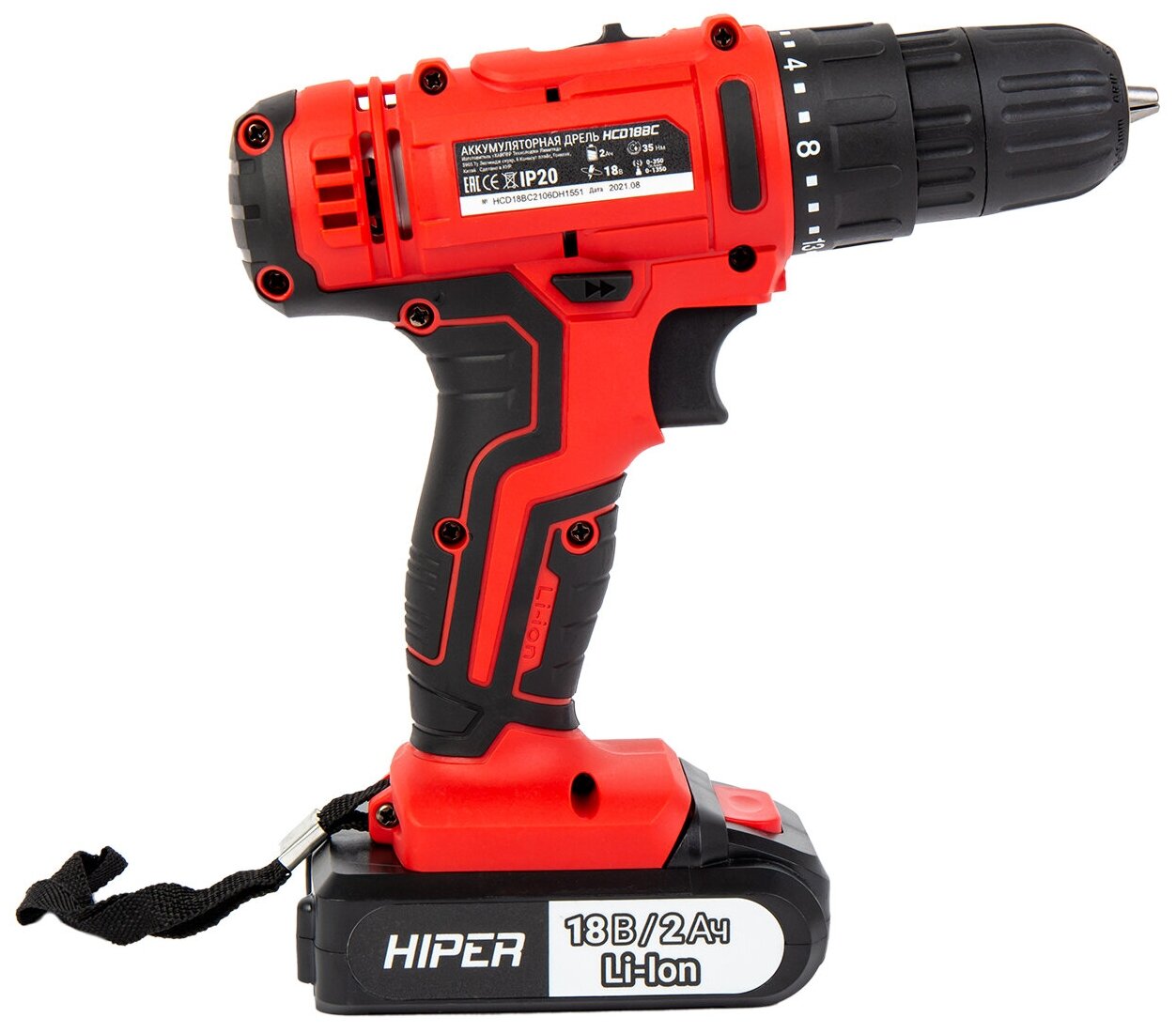 Дрель аккумуляторная 18V Hiper HCD18BС, красный