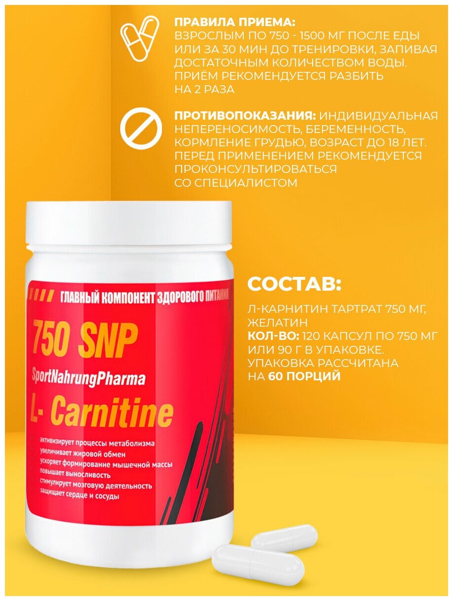Купить L Carnitine 750 SNP/ Спортивное питание l карнитин в капсулах для коррекции веса, сушки, похудения / Жиросжигатель л карнитин для спорта / Витамин B11