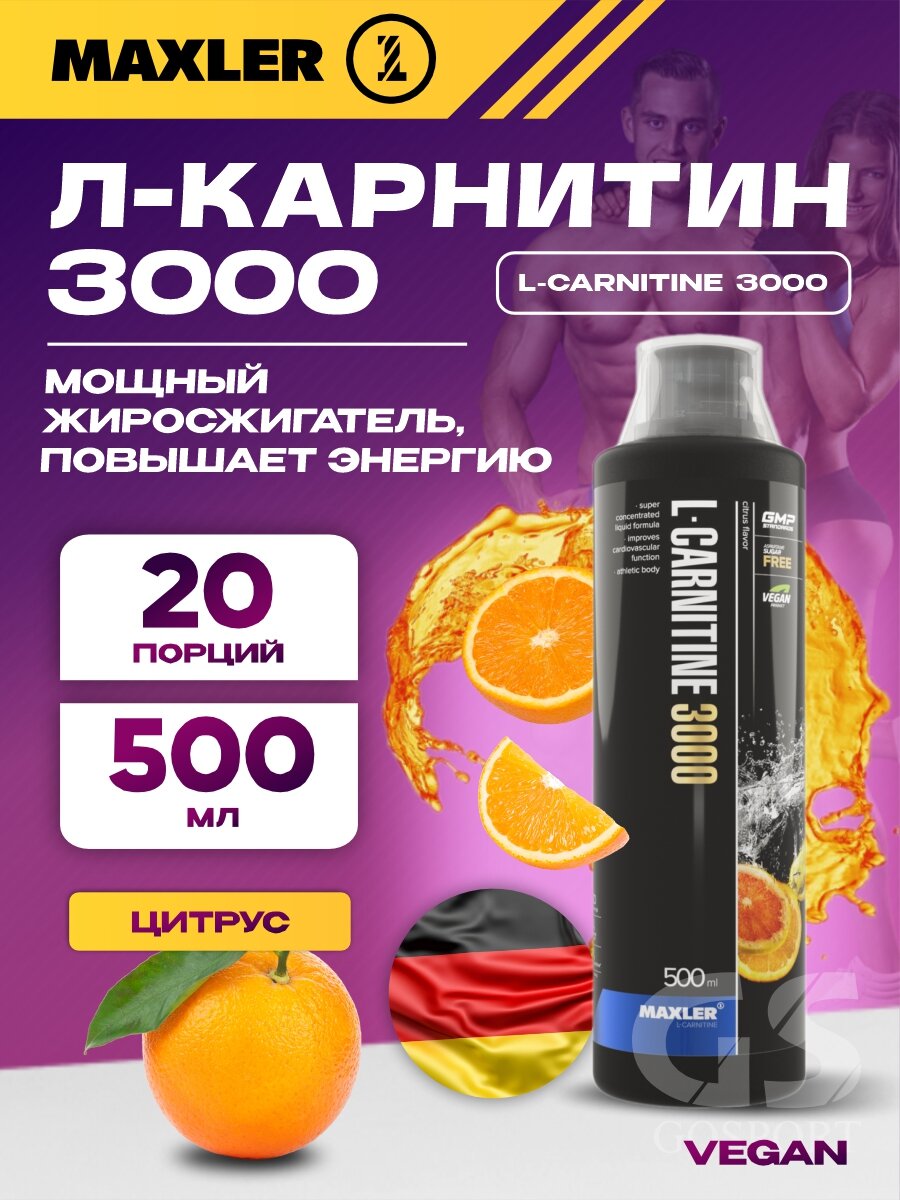 Купить Карнитин Maxler L-Carnitine 500 ml 3000 мг. - Цитрус